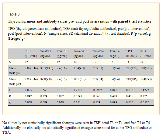 46. Abbott RD, Sadowski A, Alt AG. Efficacy of the Autoimmune Protocol Diet as Part of a Multi-disciplinary, Supported Lifestyle Intervention for Hashimoto’s Thyroiditis. Cureus. 2019;11(4):e4556. Published 2019 Apr 27. doi:10.7759/cureus.4556